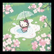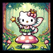 hello kitty next to a lot of berries