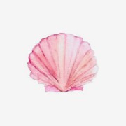 a summer themed widget with pink ,yellow, and blue colors. and a sandcastle